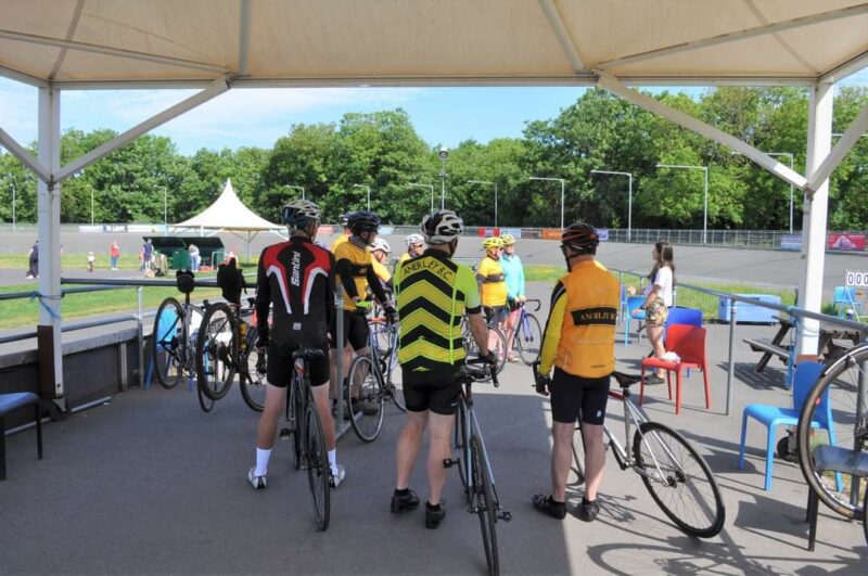 This year’s session was held on Tuesday 17th May. As in previous years we gathered at the edge of the track to watch the end of the previous session before making our way to the “bike sheds” which are shipping containers filled with single speed, fixed gear track bikes with no brakes.