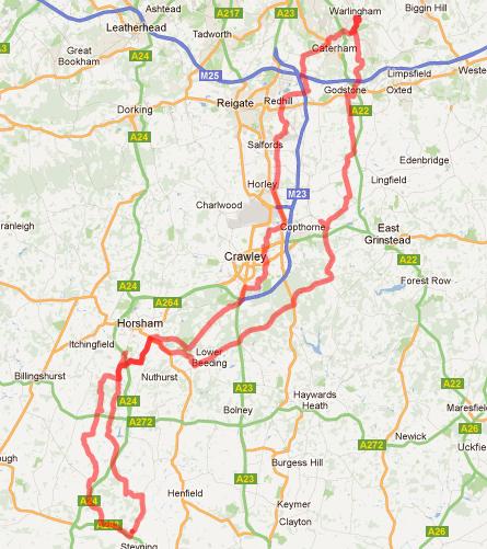 I planned our route a few days earlier, with the help (a) of an interesting club ride on Tuesday thanks to Des and (b) of cycle-route.com, which we have used before for nice jaunts in West Sussex. Tom took these google maps routes and downloaded them into our home-made car/bicycle sat nav set-up, and we were ready to roll.