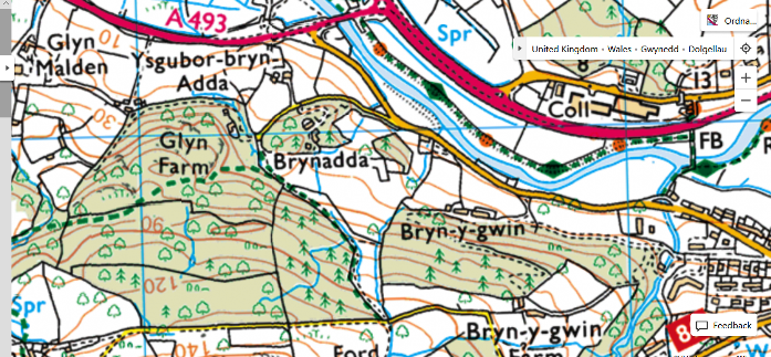 Brynadda is shown in the centre of the OS map below, and the Mawddach Trail, cycle route, is just across the river.