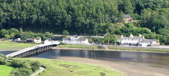 We will start the ride by crossing over the river to the north bank by way of the old toll bridge from Penmaenpool. This riverside hamlet is on the south bank and shown below. It is of interest to us, that the bridge opened in 1879, two years before Anerley B.C started!