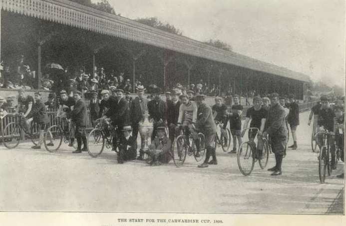 However I do have a photo to show you of the start of the Cawardine Cup Race held at Crystal Palace in 1899, the year before we lost the cup for ever. Note the size of the Cup at centre front in the photo below!