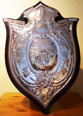 The Appletree Shield was donated to the Vegetarian Cycle Club by the owner of the Appletree Vegetarian Restaurant, hence its name.  The shield was awarded by the Veggie C.C at an annual event to the rider who covered the greatest distance on a road course, in 12 hours.  In the following years, 1901, 1902, and 1904 the shield was awarded to G.A. Olley of the Anerley Bicycle Club, one of the most outstanding distance cyclists of his era.  His record ride in 1904 was over a distance of 202 miles, which over unmade roads (no tarmac then, just muddy cart tracks!) was a great achievement. It was also an achievement to win this gruelling event three times, as a result of which the shield was given to him to keep, in perpetuity.