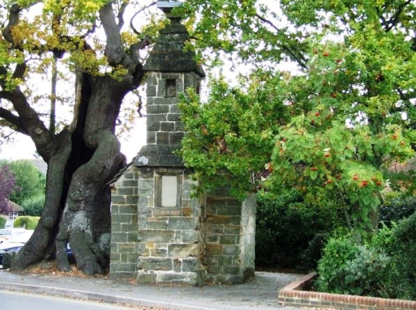 Lingfield, until recent times, was the largest village in the county of Surrey. Now it is Cranleigh on the opposite side of the county. But Lingfield has much more of historic interest. It even appears on a map dated to A.D 871, where it is spelled as Leangafeld. Around the corner from Jenny Lane, beside the village pond and nestling under an ancient oak tree, is something else of note.