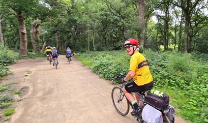 We had by this time travelled close by military training areas and ranges, dug mud out of close-fitting mudguards, dodged healthy looking stinging nettles adjacent narrow paths and discussed at length, what animal had ‘dumped’ right in the middle of a path etc etc. It had been a fun but tiring few hours.