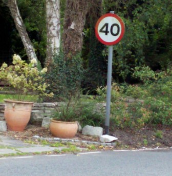 Below is a 30 mph sign which we regularly pass when homeward bound on our rides. There is of course another one, a 40 mph sign, when going out in the opposite direction.  Do you recognize where these are located? Sent your answers to me, preferably on a £5 note!