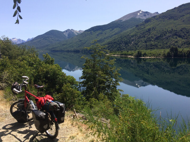 The campsite at Bariloche was difficult to reach – up one of the steepest stony hills imaginable. I got stuck half way up, leaning against my bike and unable to move it any further. Luckily a man came down from the campsite and gave the back of my bike a heave and I managed to get to the top. The campsite was expensive but there was no way we were going back down that track again anytime soon! We ended up spending two nights in the campsite (mainly because it had a bar that not only sold cold beer but baskets of chips). Getting back down the track was equally tricky and it wasn’t long after I had to have my brakes tightened!