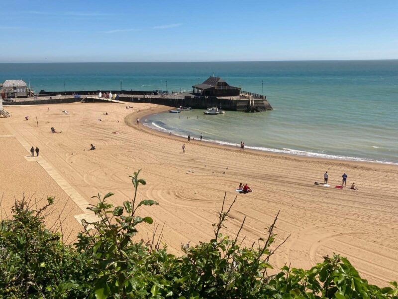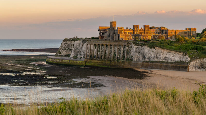 King Charles II, enroute by sea from London to the cross channel port of Ramsgate, was forced to land here during a violent storm. To mark this life saving escape from drowning he named the bay as the Kings Gate(way). The mock castle that now adorns it’s headland was financed by grand theft by Henry Fox, or to give him his title, Lord Holland, of whom you probably know nothing. However you will have heard of Holland Park in west London, a suburb where Henry Fox had a grand park and grand mansion. But desirous of having a seaside “cottage” he built Kingsgate Castle!