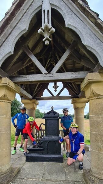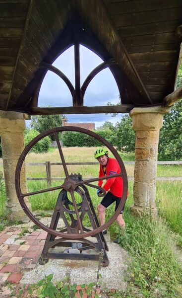 Summertime cycling is thirsty work, so we decide on a bit if self service at the village well opposite the pub!