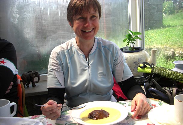 John was in normal clothes. He had sensibly checked the weather forecast -20mph headwind with 30mph gusts and rain, the accuracy of which was confirmed by looking out the window. An unpleasant prospect indeed. I handed in my brevet card. Had it just been a 600K ride I would undoubtedly have gritted my teeth and got on with it solo having already done 356K, but there was further than 600K still to go. Even had I been full of enthusiasm for the challenge (which I sooo wasn’t) I’m just not a strong enough rider for that level of headwind, on my own, over a long distance. Add into that some VERY large nasty and exposed hills with probable wet descents which could well have had to have been done in the dark. Just Cairn O’ Mount and Glenshee had taken a lot out of my legs and I knew I was way out of my depth.This combined with exhaustion (2 hours sleep over what would probably be the best part of 48 hours by the time I returned to base again) would have been a recipe for an accident. The isolation of the hilly areas and lack of phone signal wouldn’t have boded well for being found, assuming I actually survived the “off”. A fall on the descent of Glenshee could easily have proved fatal if you went over the edge, no matter how slow and careful you were trying to be. A missed pothole would have been enough given the steepness in places. There was nothing to indicate the “proper” hills still to come would be different. There was no way I was going back out on my own once the chap I had ridden the last 3 stages with packed. Had he wanted to continue I would have reluctantly ridden on with him.