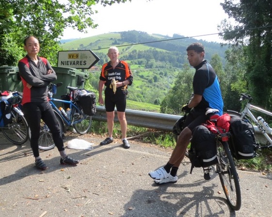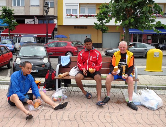 Leaving home with Tom at 5 o’ clock in the morning, the first top up was most welcome at a cafe at Horsham.  Ricky and I, not wanting a start before dawn, travelled by train to Horsham where we joined them.  For us, just a cuppa, for them a full English fry up.  But this did have to last well into the day, as lack of cafes meant that lunch was not taken until long past high noon.  The next greasy spoon only being sighted when we reached Havent, not far from our destination, the ferry at Portsmouth.  Having survived this first lengthy fast, Christopher made up for it as we sped onwards to Spain.  The on board cafeteria providing a new meaning perhaps for fast food!