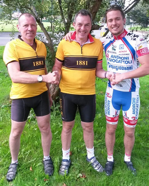 The top 3 finishers in the 2015 Anerley Club 10 mile T.T