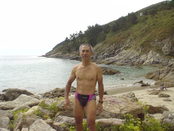 Now Yoshi and I waited with anticipation. Were Ewa and Irena going to fulfil the final cleansing? Were they going to burn their bras and leap naked into the cold Atlantic waters? Well unfortunately not, but Ironman Yoshi did, and that certainly warranted another photo!