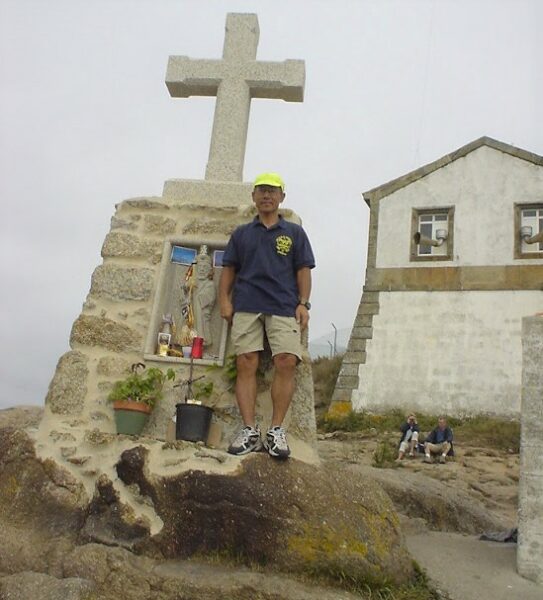 It was an interesting ride zigzagging up and down the steep sides of wooded hills, past verdant farms and small hamlets, until eventually we wound our way down to a wide bay with sandy beaches and wooded cliffs stretching off to distant headlands on each side of the bay. We continued along the coast road, west and then south to our destination at the small village of Finisterre. From here it was a 3.5k cliff walk to the light house and Pilgrim’s shrine, on the very end of the world, and over a 4,000 miles of ocean to the next land fall on the coast of the Americas.