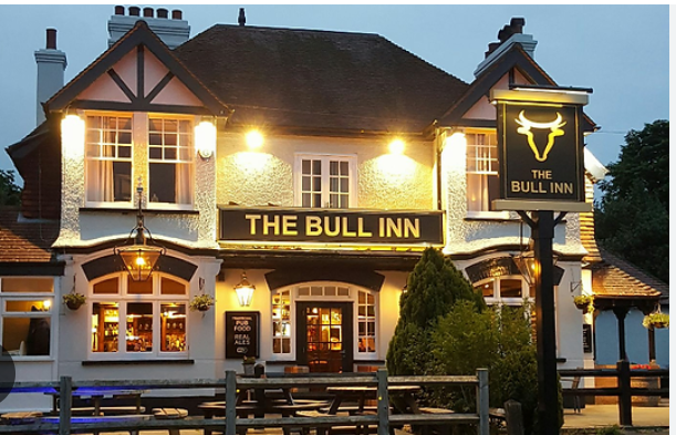 In Part 1 of this story in last month’s Anerley Gazette, I had left the mutinous troops asking – “Are we there yet?” – “Where’s the tea stop?” So it was a “Quick March!” to the nearest pub, which fortunately was not far away. A nice little country pub which I had discovered over 25 years ago when I had returned to my teenage interest in cycling. However my teenage bike, an Italian pseudo racer with Campag Double Clanger gear change, was then substituted with a mountain bike and Shimano triple chainset. Exploring the local bridleways on a hot summer’s day I had come across this lovely pub on Chelsham Green – in daylight hours – but this photo shows it off so much better!