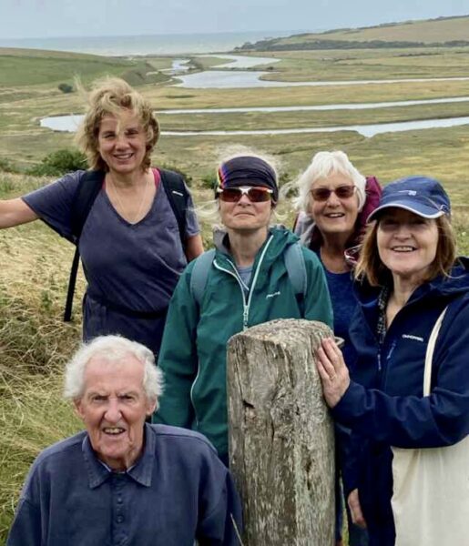 And to finish this write up, I must add that in August of this year, 6 off us had some Anerley Away Days based at Newhaven. During our stay we had a Summer Hike during which Tom Tom took this photo of us with Cuckmere Haven in the background. This was at the start of our day’s hike, which was along the southern end of the Vanguard way!