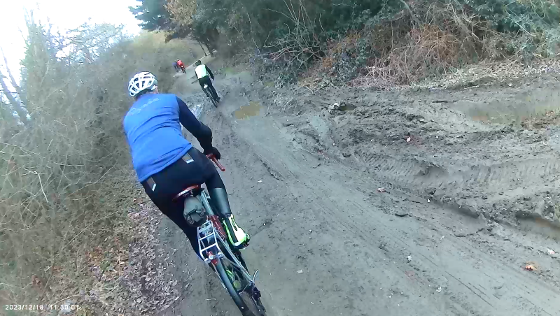 The trail was actually quite pretty and included Hextalls Lane at the bottom of Hilltop (we usually fly past this one on our way down the hill across the M25 bridge). This track was typical of the whole route, mostly dry, hardpacked mud with some gravel.