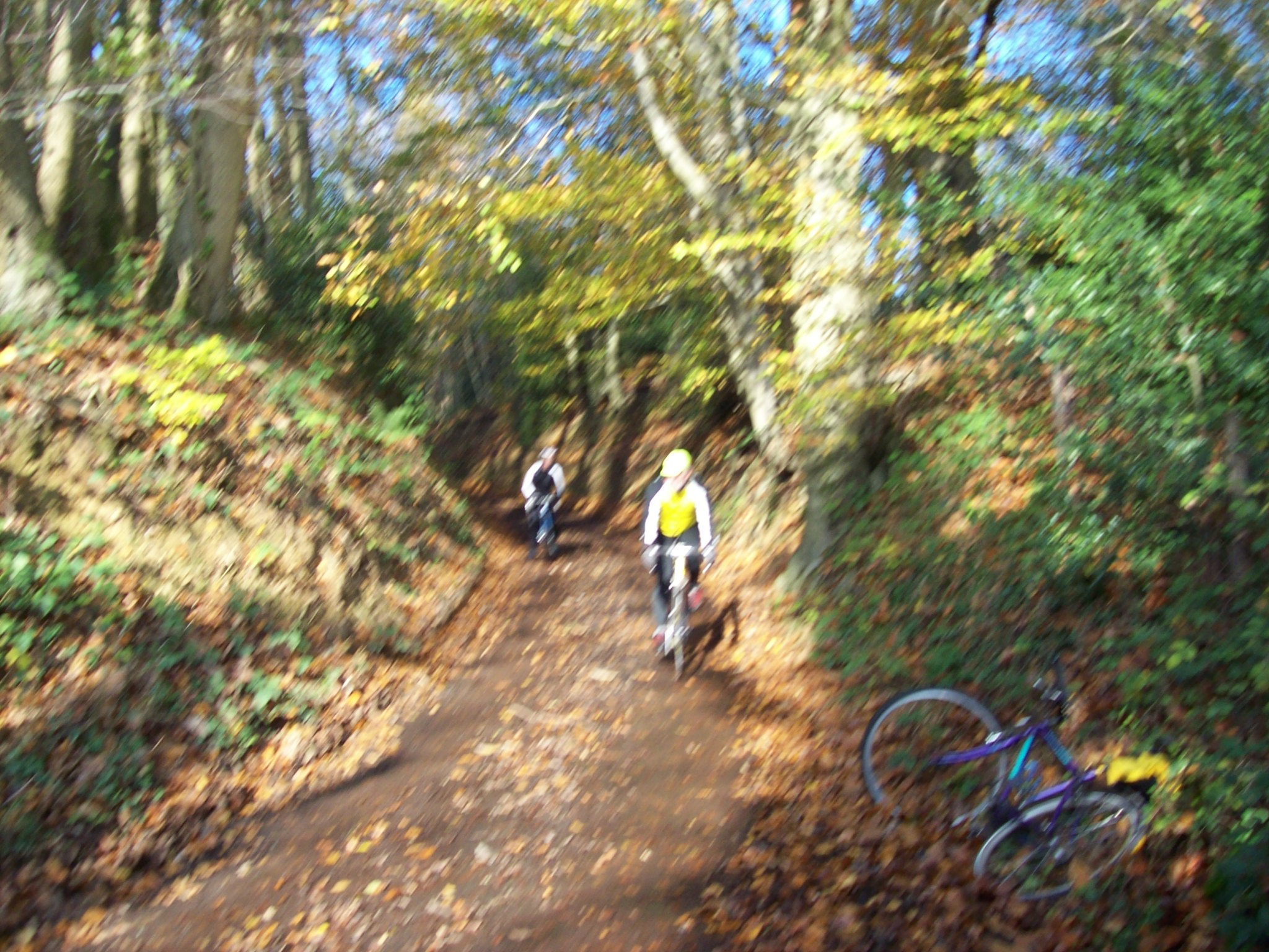 “After the climb upto the top by Botley Hill Farm and later the climb out of Westerham and over Hosey Common, all ensured that I maintained an average heart rate of over 80% of max! Of course the purpose of the ride was not to kill us, but to enjoy the ride! So arriving at the top of Hosey Common we turned off into Hosey Common Lane, a very narrow country lane through woodland, the autumn tints, enhanced by the dappled sunlight through the trees.