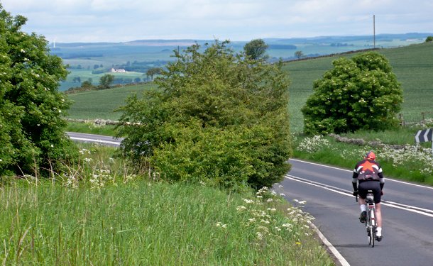 Then as we approached Bishops Auckland the landscape changed. Long slow climbs and then nervewracking descents. I, as were some others, were pretty cowardly at first but as confidence improved I clocked 40.3 mph. It would have been faster if I hadn’t feathered the brakes.