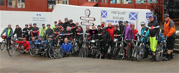 The night in Wick celebrating was great, the return (us in a coach, the bikes in the van) was marked by one last strike by the p**cture fairy on the A74 as we lost a rear tyre. It took us 15 hours to get back to London. It actually seemed to be further than our bike ride.
