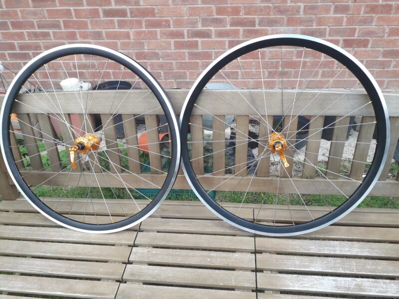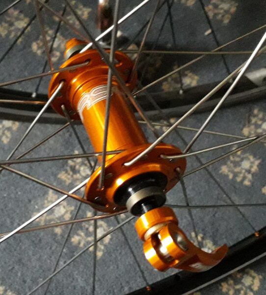 It was at this point i decided to get custom built wheels to match. As my Moulton has hand built wheels by SBC cycles I gave them a ring. Can you make me a pair of wheels with Hope  RS4 Hubs with 32 spokes rear & 28 spokes at the front with orange nipples & black rims. Yes they said be ready in 4 weeks.