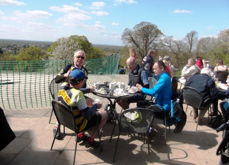 Back on our bikes and with the clock showing nearly one o’clock, it was time for tea at Pembroke Lodge, with another viewpoint from the terrace.
