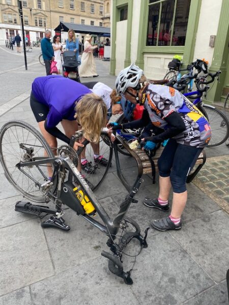 Next stop was Bath, where Sandy punctured. Well, not her but her tyre!
