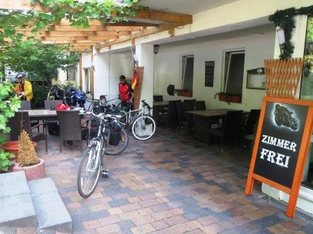 A small but very pleasant hotel provided our beds for the night. The sign outside suggested that motor cyclists provided more trade than pedal cyclists, but on this occasion the the pedallers out numbered the petrol heads by 5 to 2.