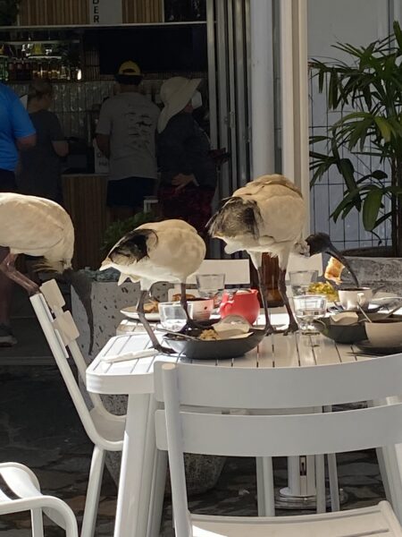 The next day was a weekend so I joined Martin on a longer ride. Again, an early start and we set off inland into Bundaberg to meet three of Martin’s mates. They all had good bikes and one was a regular veteran racer, younger than me but no spring chicken, his legs were strong and well-toned. I was a little apprehensive on whether I would be able to keep up. Martin had decided to take his new Gravel Bike with disk brakes. He had swapped his wheels over for lighter ones but it was still a relatively heavy bike. Off we went, the others taking regular turns on the front but the pace still at a fairly comfortable conversation level. Partly because I didn’t know where we were going and partly because I thought I’d better pace myself, I stayed at the back. My companions explained that the white birds that we passed, often in drive ways, with long curved beaks were known as “Bin Chickens”. So called as they were often to be found scavenging in bins and the urban environment. They are in fact Australian White Ibis.