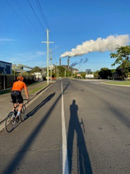 We took a left in a residential area, cycled to the end of a Cul-de-Sac and did a U-turn. Curious, I thought, surely they know these roads. I put it down to a misunderstanding between the group and we returned to the road we had just been on and then took the next left. Ah, I suppose all these residential roads look very similar we must have just turned off too early.  Enjoying a rare downhill and regaining my position at the back of the peloton I heard the squeal of brakes and looked up to see we were at the end of another Cul-de -Sac and once again were turning round back up the hill. Then it dawned on me; we were deliberately looking for any hill however short and however pointless. I started to find this surprisingly challenging, as instead of a steady plod back up the hill they seemed to accelerate up the hill often standing to get enough power! These short sharp shocks always injected a gap that I had struggled to close. Finally, we did a long descent to the wide Bernett River. Here we had a short break to get our breath back while they told me about the devastating flood here. See the You Tube video – The story of the 2013 Bundaberg Flood Disaster : https://www.youtube.com/watch?v=23RW3SnYoPc