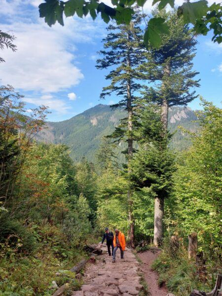 All very good advice I expect but in the morning, at 8am, the weather looked fine. After a brief discussion, we chose to take a risk, walk to the park and see what the situation was before making a final decision. Wise choice because we saw many Polish visitors and their families, even with young babies so we decided to carry on into the mountains. Just in case, I had a shorter route down the mountain should the weather change suddenly.