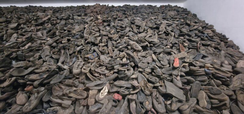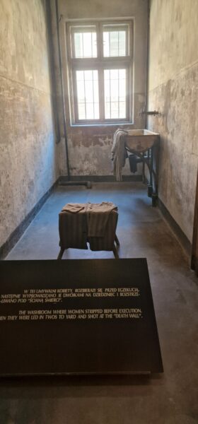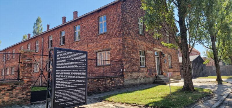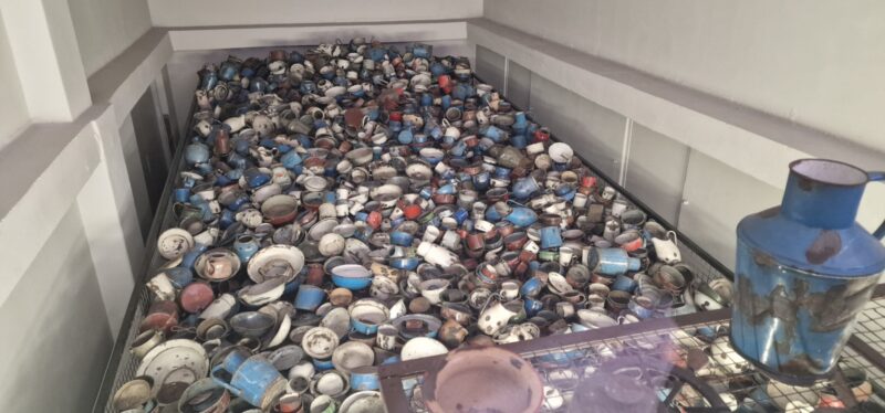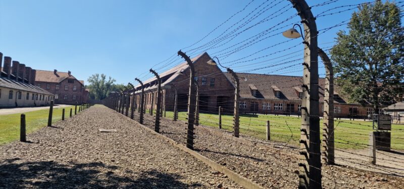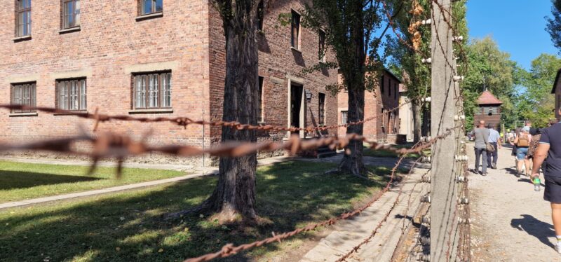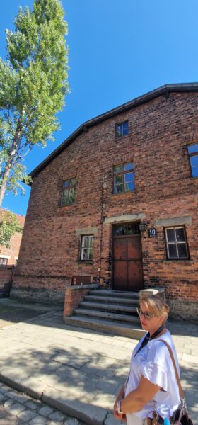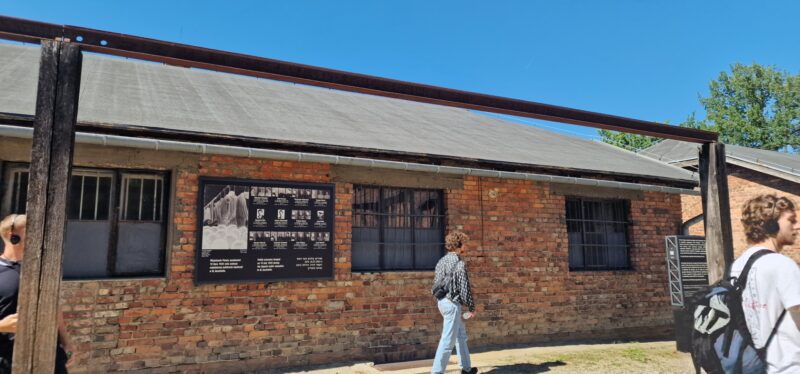 OÅ›wiÄ™cim is the Polish name for the town where the Nazis built their extermination camp and as we did the short ride to the Auschwitz 1, it was very surreal to see an amusement park with a roller coaster in the near distance. I guess people just carry on living in the darkest shadows of history. After some confusion with the tour company about how to get into the camp, tickets were WhatsApped to me and we were in after a heavy security check. Many people with Israeli flags but there were also many other people from all over the world. More confusion as our guide didn’t appear but another phone call directed us to a waiting area and we joined an English speaking tour. I don’t think this was the private tour we should have been with but the Official guide let us join without any fuss.