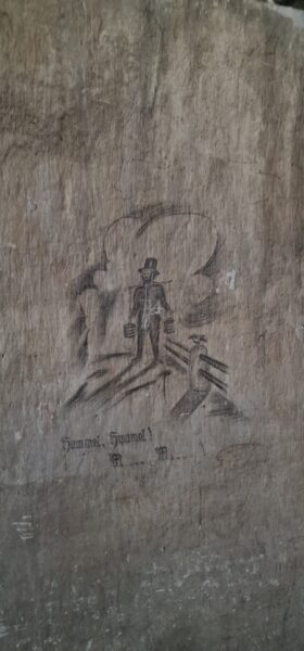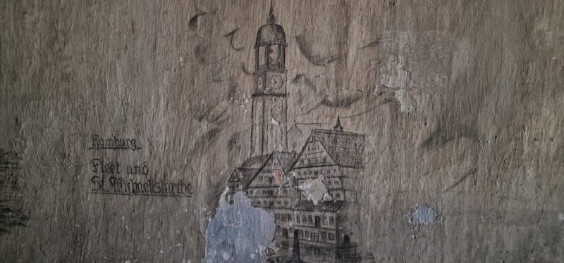 These drawings in the prisoner hut were created by a later German POW and one of them features St Michael’s Kirk in Hamburg which I know well having lived in the city. It was one of the few buildings not flattened by the allies during “Bomber” Harris campaign.