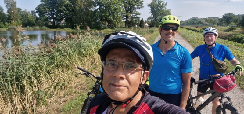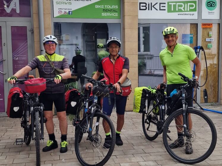 Prompted by 85 year old Des, I thought an adventure in Poland would be good – promising miles of easy cycling, sunshine and an interesting history. Choosing TomTom and Asif as companions (we had many miles of cycling and an easy friendship between us) planning started in earnest. Krakow was the start and end point of an anticlockwise circuit with the River Vistula taking us west and southwards and the River Dunajec bringing us back across the border from Slovakia. Bearing in mind Des’ age, Asif’s diabetes, TomTom’s lung issues and my heart problems the route was expected to be gentle (well I didn’t want to frighten anyone by mentioning a few days of 50 miles hilly sections).