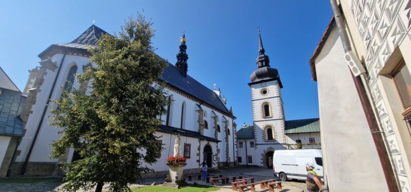 The route today had a couple of big lumps in it but first we had a look around Stary SÄ…cz. The evening before, we had arrived quite late and it was getting pretty dark so we were surprised to see what a very attractive town it was. “Stary” apparently means old so there were a lot of old buildings to look at including the Church of St Elizabeth of Poland.