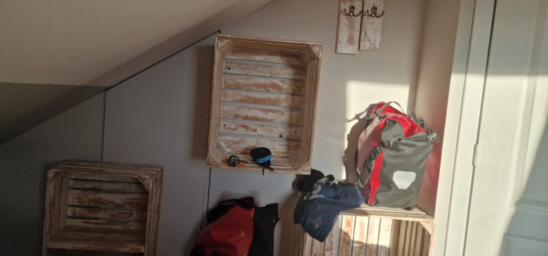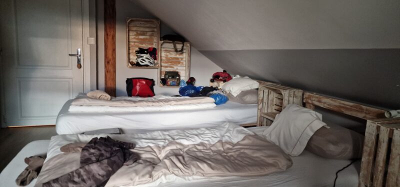 The road up to Agroturystyka Nad jeziorem-Osada Indiańska Szalony Koń (phew, what a mouthful) was too steep to ride so we walked up most of it. Thankfully, the beer and pizza sustained us through this tough walk. When I spoke to her, the owner did not speak a word of English but fortunately we could communicate as we both spoke a bit of German. Very rustic rooms in a barn conversion, furniture made from reclaimed pallets but the shower was great and the view from our room was spectacular.