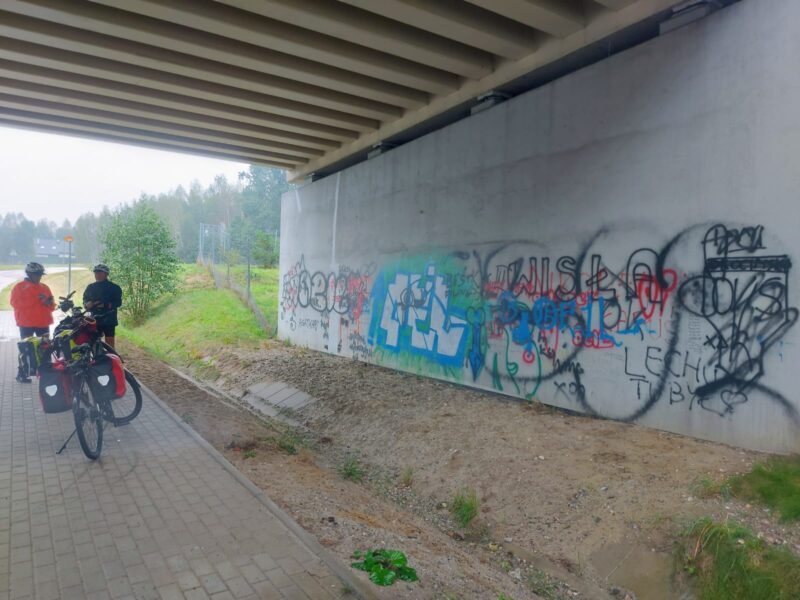 If you look carefully at the spelling, there is a strange letter Å‚ which looks like an “l” but is actually pronounced w. Of course w is pronouced as a v. This is one of the many reasons we didn’t have a clue how to ask for directions to anywhere. Thank goodness for Garmin – well actually, as I didn’t have a Garmin map of Poland, I was now relying on the Komoot “app” which is available on my Garmin Edge Touring 2. This provides a Komoot map on your Garmin via a bluetooth connection to your mobile phone. Although it is free for the first week, it soon becomes pretty expensive at £4.99 per week! Another downside is that the app crashes when your phone connected loses signal, blowing up your route planning as well as the journey you have recorded so far.