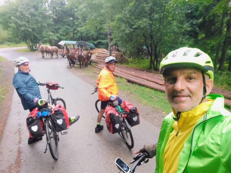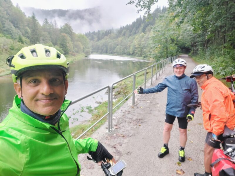 Warning change of weather! The day started with us cycling through the Dunajec Gorge along the same 14 miles we had rafted the the day before. However, it was raining heavily throughout! After some early photos at the two dams at the end of the lake, we continued along the Velo Czorsztyn. This is a good tarmac cycling route through forest alongside the river.