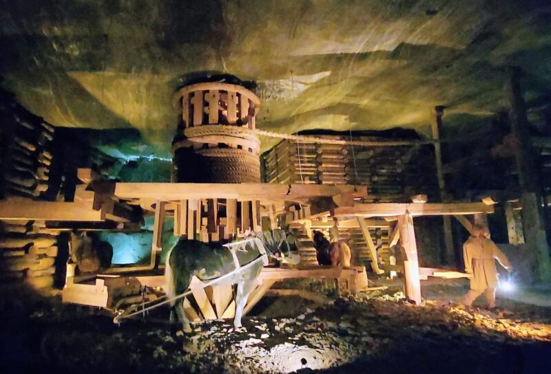 The scale of the mine is very hard to grasp with 278 kilometers of of tunnels. The tourist route takes you through just 3.5 kilometers and is 1,073 feet at its deepest. Most of the tunnels are lined with pine logs and countless trees were taken undergroung to prevent collapse. The floors are of course made of salt which although highly soluble, is as hard as marble.