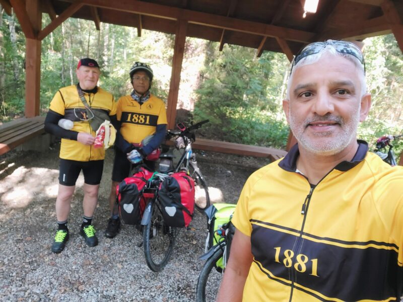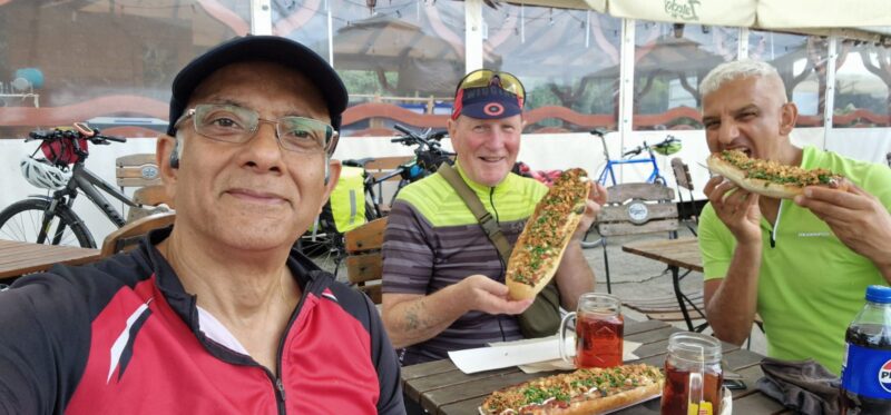 Asif had been cycling through the year and was fairly fit. I wasn’t as fit as I would like to be (too many cruise buffets!). TomTom had not ridden for many months due to hospital appointments and breathing issues but I organised a few days of rides around Surrey to get him up to doing 40 miles in a day. Des, although seeming indestructible, realised that his knees were causing him too much grief at his venerable age and sadly pulled out of the trip leaving just us 3 crocks to make the journey.