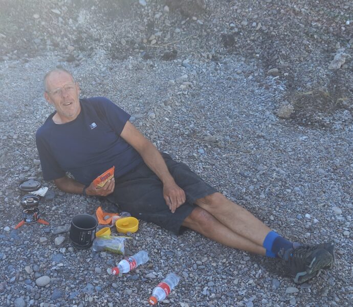 As it turned out, a few miles into the next day, the water source I had identified a mile off the route was running. We filtered the water even though it smelt and looked good and was from deep underground. We also drank as much as we could. We had learnt our lesson and on these drier sections we now carried 7 litres of water each instead of the 3 or 4 litres we had been carrying.