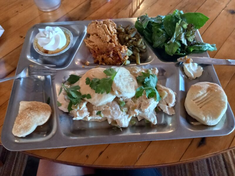 Toaster House recorded 900 visitors in 2022. This was causing a bit of controversy with the locals as the Toaster House was often exceeding its water quota. On the other hand, it was bringing trade into this small community (186 people). The town is so called as it had a bakery in the 1920s that was famous for its apple pies. Pie Town now has two Pie Cafes producing all types of savoury and sweet pies and has a Pie Festival in September. We tried both cafes; one for an evening meal and one for breakfast. For the evening meal we went to the cleverly named the “Pie-o-neer” where we experienced our first meal to include “Gravy and Biscuits”. The biscuits are actually more like scones.