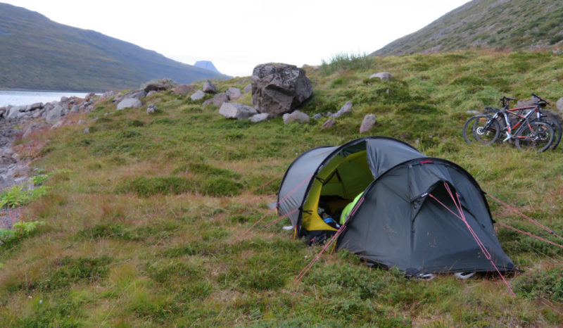It was a few hundred km of this but the scenery was stunning, the sun mostly shone and our bikes were getting lighter! One night, wild camping, a baby seal swam back and forth watching us – it’s head straining out of the water for a better view. It was easy to wild camp with plenty of fresh water everywhere. We often cycled 70 miles a day on these lovely roads.