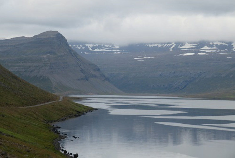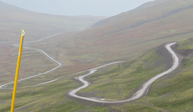 A 6km tunnel awaited us after Isafjordur and I was nervous about going through. It was an odd tunnel with a junction in the middle and one half single file and I woke Tim up early so we could go through before the few cars we saw each day arrived. We were on the road by 7.30 but it was fine – big and airy there was no fumes and plenty of passing spaces along the single file section.