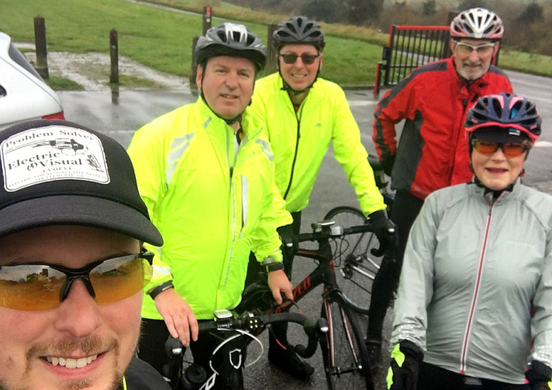 There were four of us at the start, Karen, Graham, Cam and Pete with a plan to meet Riger in Coulsdon on the way out. It was raining and cold but Auntie beeb promised the rain would soon stop and that it would be dry for the rest of the ride.