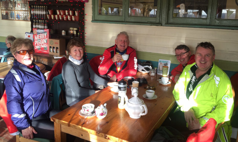 Our return was via Marden Park and up the zig zag for a final pub stop at the Wattenden Arms where Bob received an early visit from the Christmas puncture fairy.