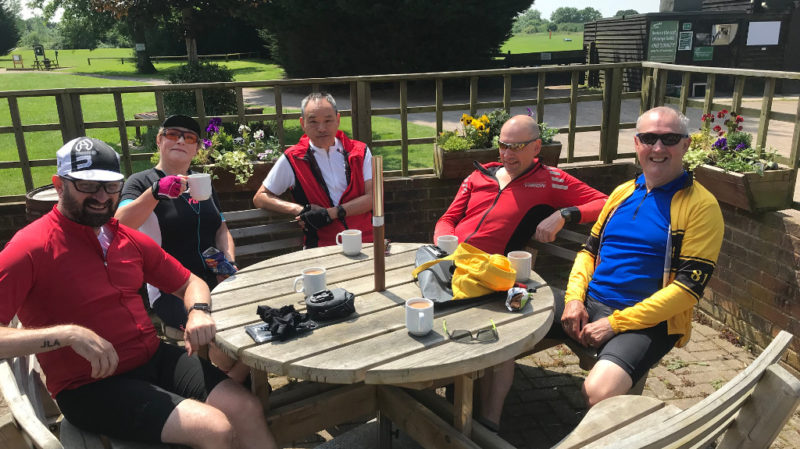 Six of us set forth on a beautiful morning out via Chipstead and Nutfield to Horne Park Golf Club for tea. Missing our normal leader, we thought we might escape the puncture fairy but stepping into Pete’s shoes is a risky business and Roger was spiked just before we arrived at the pit stop.