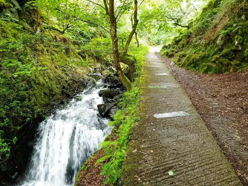 For us it is only a short bike ride from our base in Snowdonia to get to the final short access paths (there are 2 options) leading to the river bank. It does suggest doing both of the options to see the different view points of the falls along the river.