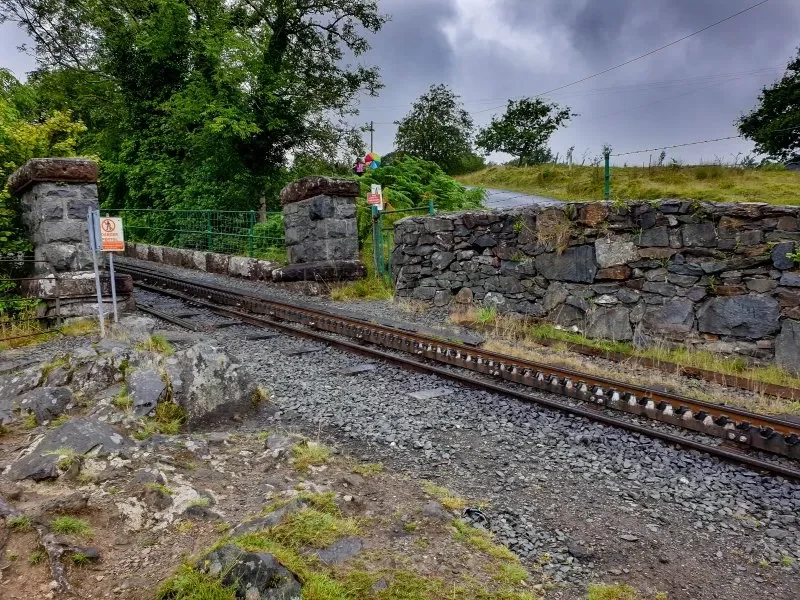 A tarmac lane leads to paths which cross over the Llanberis rack and pinion railway which goes upto the view point at the top of Snowdon – access to the falls is shown below, from the country lane to the right.