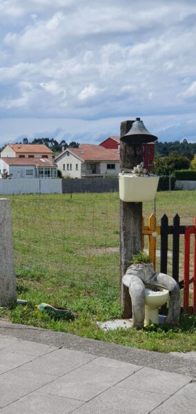 We eventually made it to the most boring lighthouse I’ve ever seen Faro de Frouxeira. This seemed like a good place to enjoy a picnic lunch and they conveniently provided a couple of tunnels to shelter from the rain which had now started to fall.