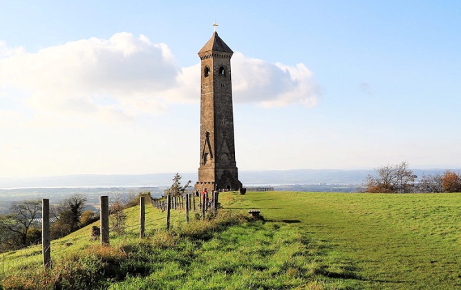 I remember that as we climbed this hill, on our right was a spectacular view over the Severn Vale, and on the ridge top, above us on our left, a tall tower. I mentioned, probably to Susan who seemed to always be on my back wheel, that I must find out what this tower was. And I did!